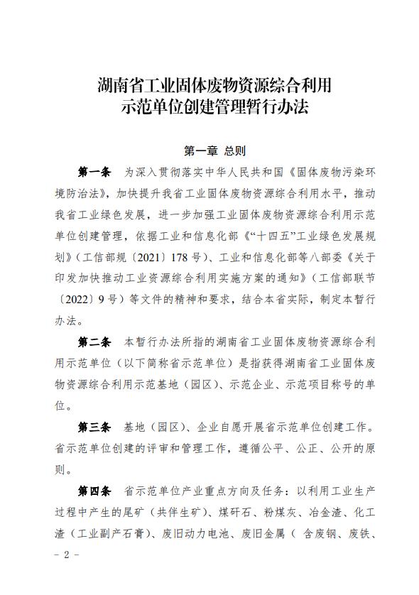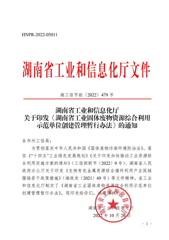 湖南省工業(yè)和信息化廳關(guān)于印發(fā)《湖南省工業(yè)固體廢物資源綜合利用示范單位創(chuàng)建管理暫行辦法》的通知