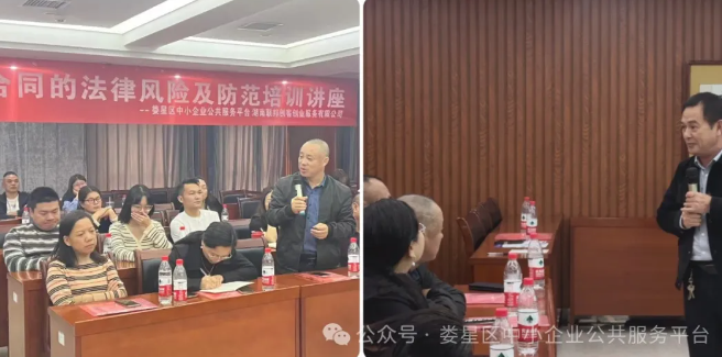 11月15日,由婁星區(qū)工業(yè)和信息化局主辦,婁星區(qū)中小企業(yè)公共服務平臺承辦,湖南泰漣律師事務所協(xié)辦的2024年“服務實體經(jīng)濟 律企攜手同行”《企業(yè)合同的法律風險及防范》培訓講座在婁星區(qū)平臺多功能會議室舉行,全區(qū)各企業(yè)家代表共40余人參加。