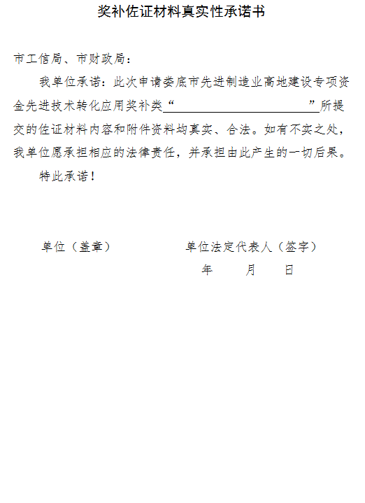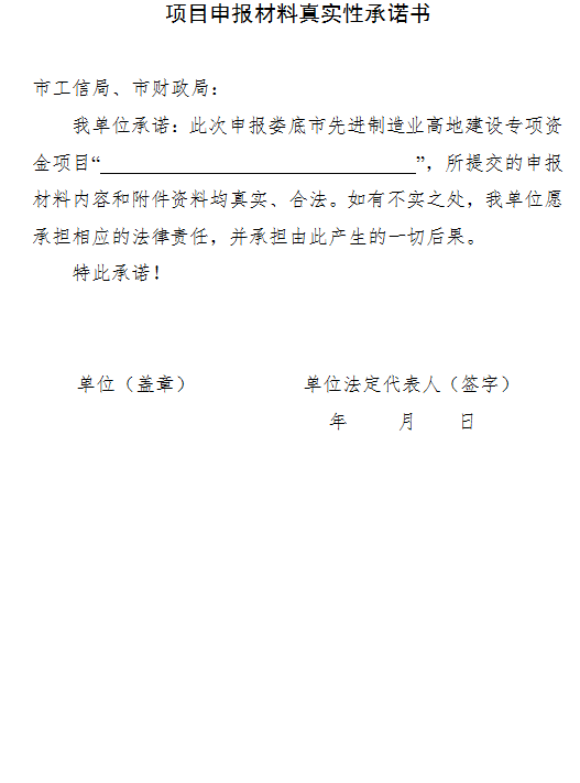 (三)其他要求。各縣市區(qū)須嚴格按照《婁底市先進制造業(yè)高地建設(shè)專項資金管理辦法》(婁財企〔2023〕147號)文件要求認真組織項目申報工作,項目申報材料必須真實齊全。嚴禁違規(guī)推薦,弄虛作假,一旦查實有資料作假行為,不予受理其上報文件,并將影響到對轄區(qū)項目的支持,同時追究申報企業(yè)、審批人員的責任。