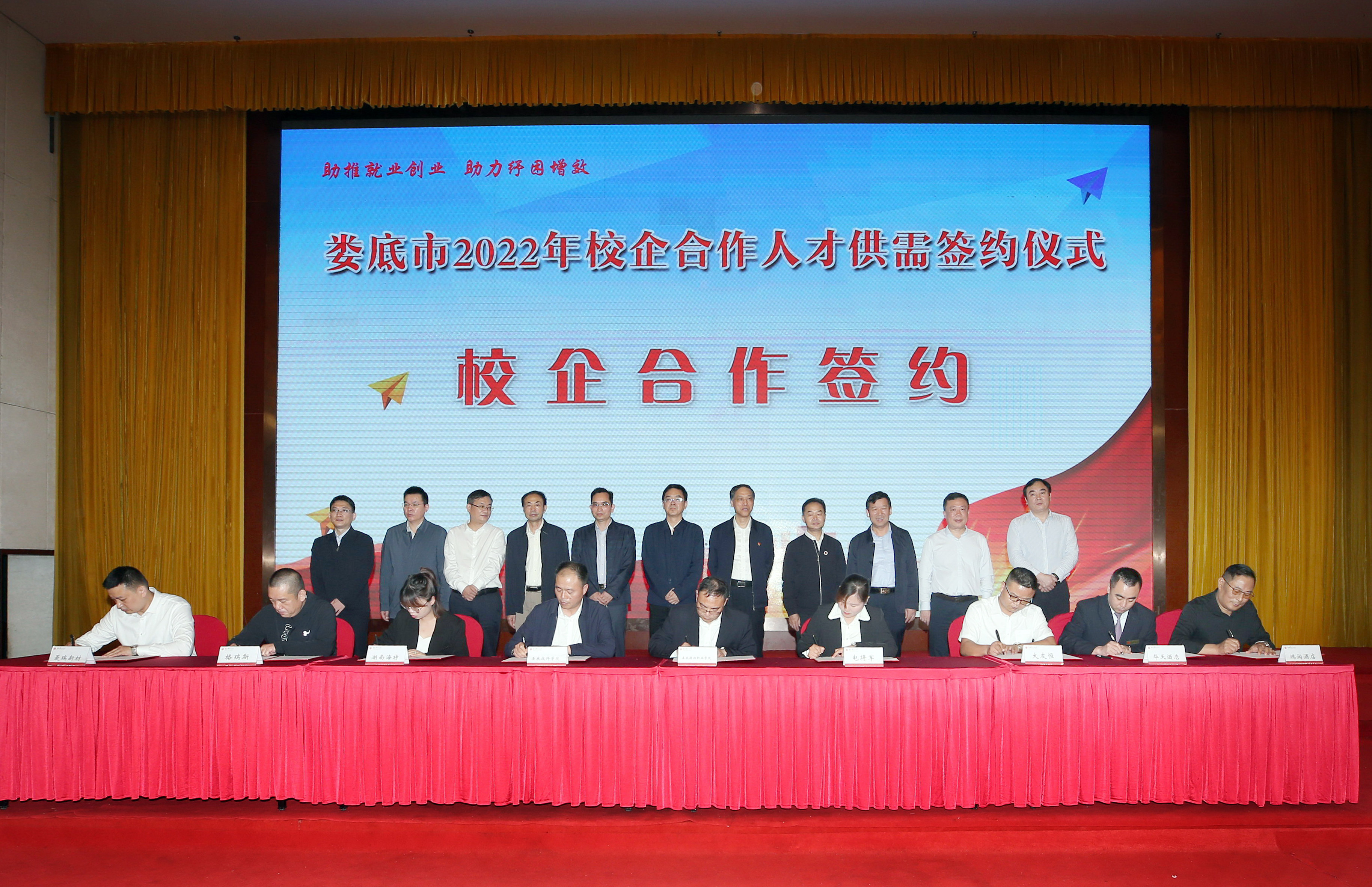 本報(bào)訊 5月28日,婁底舉行校企合作人才供需簽約儀式。湖南人文科技學(xué)院、婁底職業(yè)技術(shù)學(xué)院等4所院校與婁底經(jīng)開區(qū)、婁底高新區(qū)等5個(gè)園區(qū)簽訂校地合作協(xié)議,并與20家企業(yè)簽訂校企合作協(xié)議、應(yīng)屆畢業(yè)生就業(yè)意向協(xié)議。市委常委、市委組織部部長謝忠陽,市企業(yè)聯(lián)合會(huì)、企業(yè)家協(xié)會(huì)會(huì)長余明庭等出席。