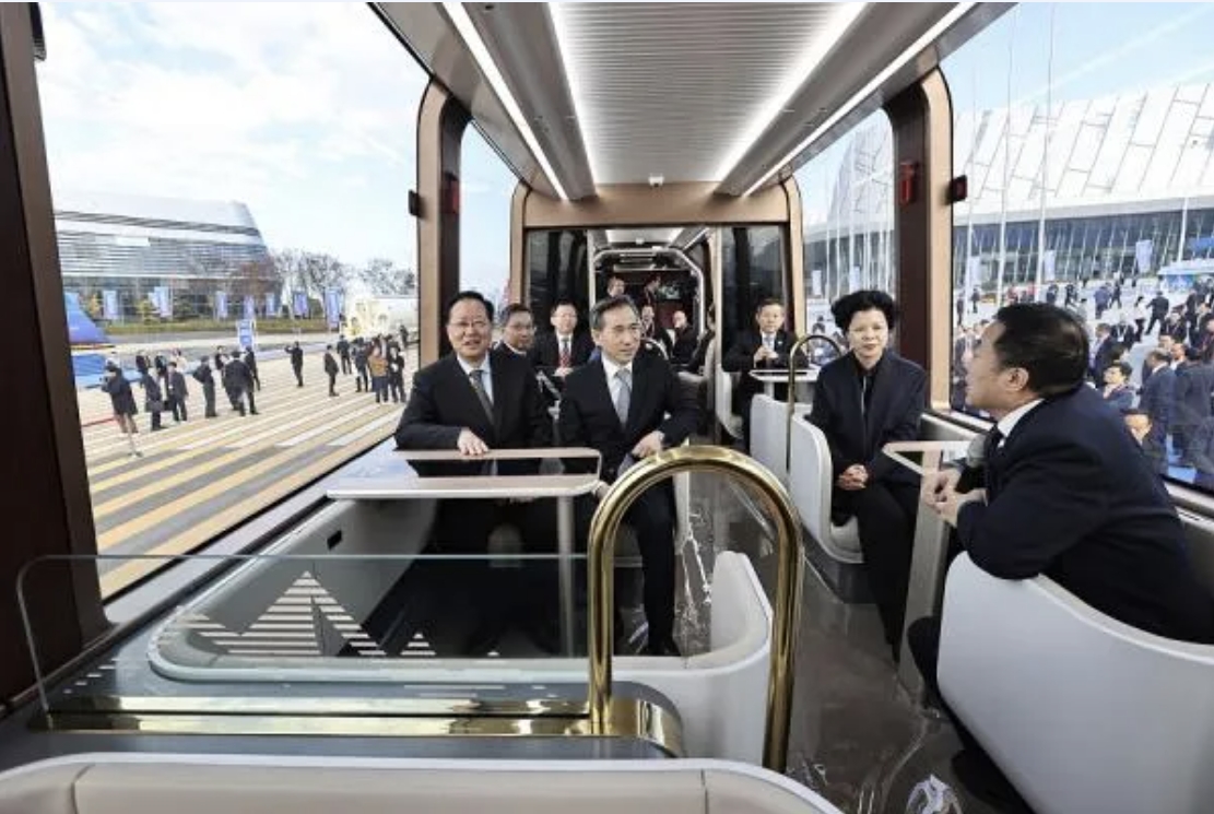 軌道交通博覽會(huì)期間,省長(zhǎng)毛偉明,中國(guó)國(guó)際貿(mào)易促進(jìn)會(huì)會(huì)長(zhǎng)、黨組書記任鴻斌一行試乘中車新研發(fā)的雪山旅列。